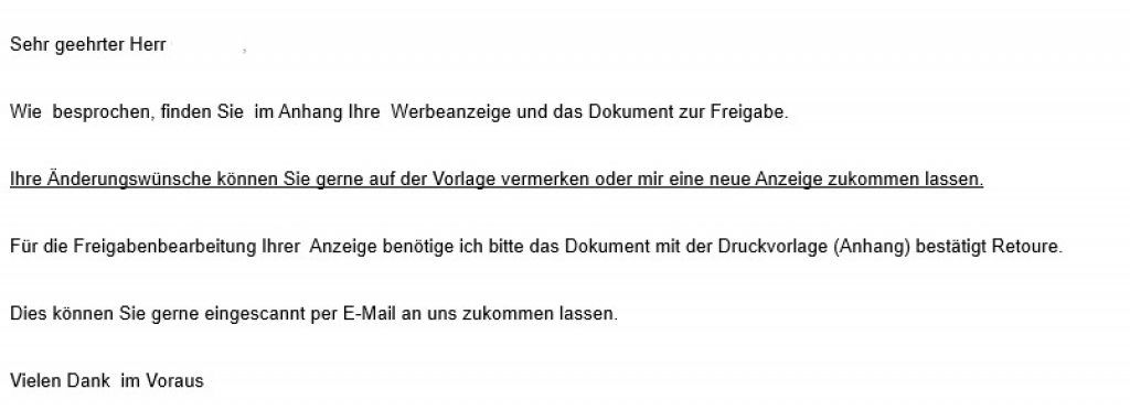 Wir weisen ausdrücklich darauf hin, dass derartige Verlage nicht in unserem Auftrag und Namen tätig sind. Ebenfalls bestätigen wir, dass wir Anzeigen oder Daten unserer Kunden nicht an Dritte weitergeben!“