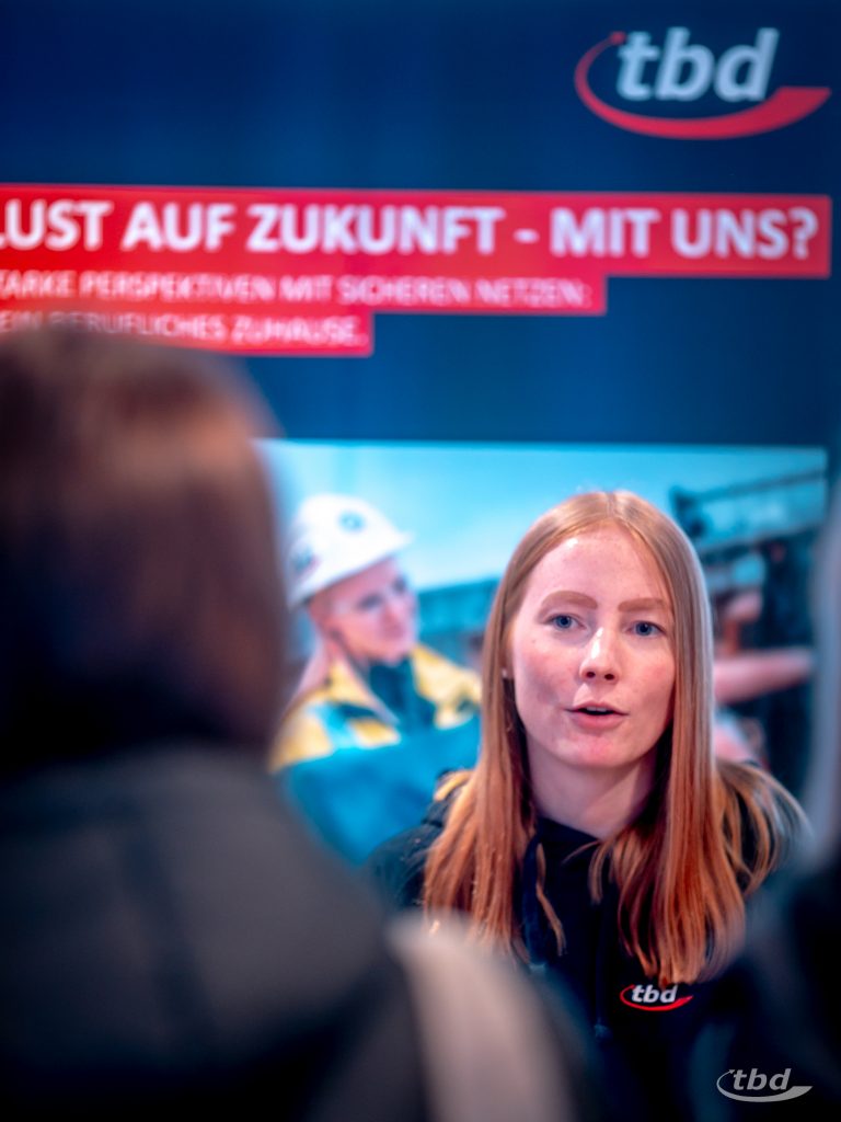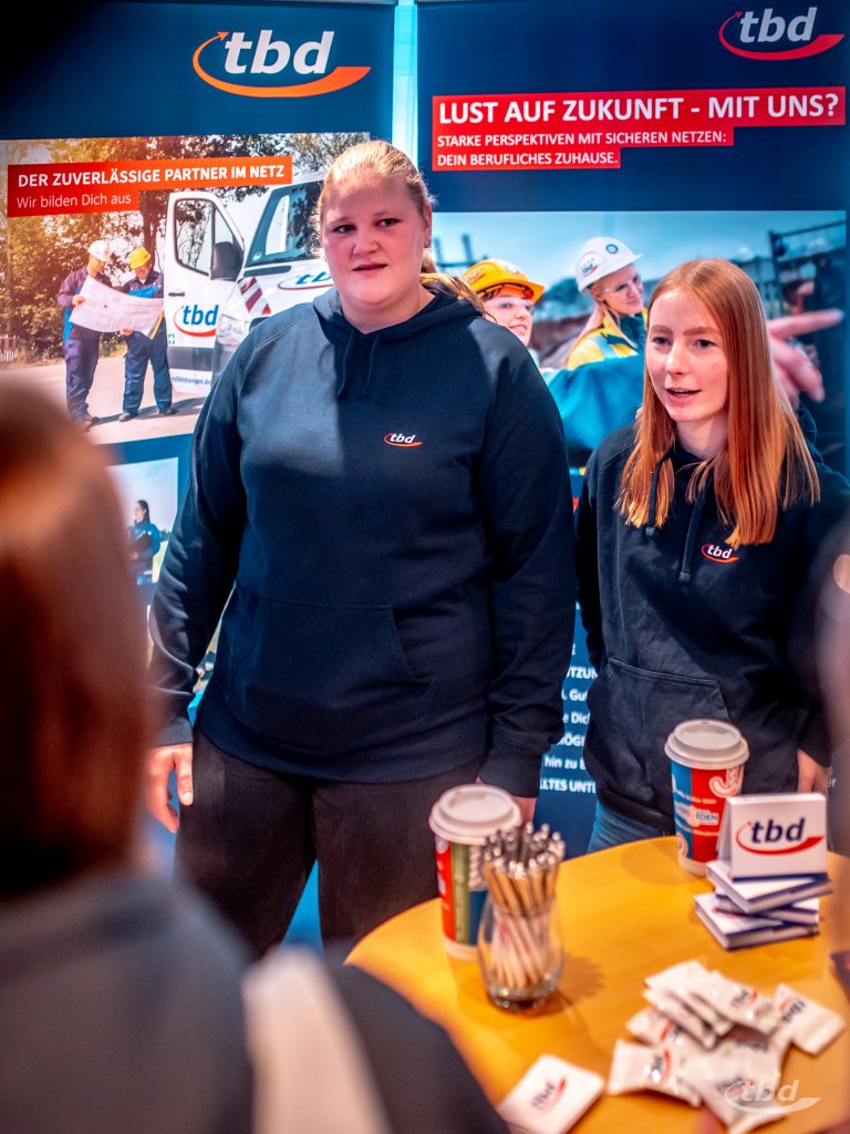 Marit und Anouschka aus unserem Messe-Team haben die Fragen sehr gern beantwortet und über freie Stellen bei uns informiert.
