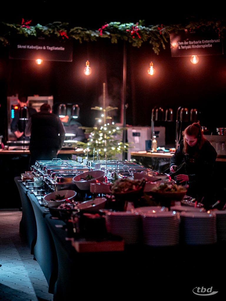 Wer feiern kann, kann auch arbeiten? Zum Jahresende drehen wir die alte Phrase gern um: Wer hart gearbeitet hat, kann auch feiern. Genau dafür mieten wir keinen Saal, sondern verwandeln unsere Lagerhalle am Firmensitz in Friedeburg wieder in einen Saal und die gepflasterte Fläche davor in einen idyllischen Weihnachtsmarkt.
