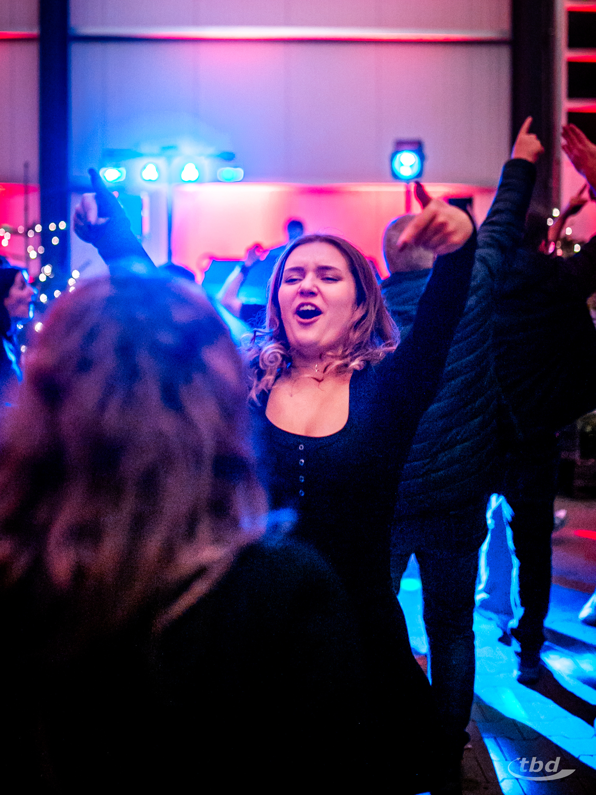 Auch diesmal stoßen unsere Kolleginnen und Kollegen in munter wechselnden Runden miteinander an, quatschen, schlemmen miteinander (das Buffet war wieder super), fiebern bei der Tombola mit. Ziehen sich immer wieder gegenseitig auf die Tanzfläche, singen und tanzen bis weit in die Nacht hinein.