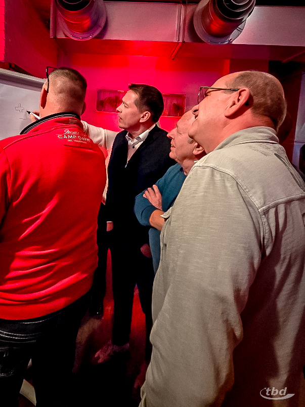 Draußen fegen eisige Böen ums Gemäuer, drinnen geht es heiß her – beim Neujahrsempfang unserer Kolleg:innen in Bernau. LED-Strahler tauchen das Ofenhaus am Gaswerk im Stadtzentrum in festliches Licht. Vom Buffet her zieht der Duft von frischem Braten, Kartoffelauflauf und Wraps durch den Saal. Und sorgsam aufgereiht, drängeln sich liebevoll eingepackte Geschenke für die Tombola auf einem Tisch, die fast die Frage aufkommen lassen: Ja, ist denn noch Weihnachten? Ein ganz bisschen schon, denn der Neujahrsempfang ist unser brandenburgisches Pendant zur großen Weihnachtsfeier in Friedeburg.