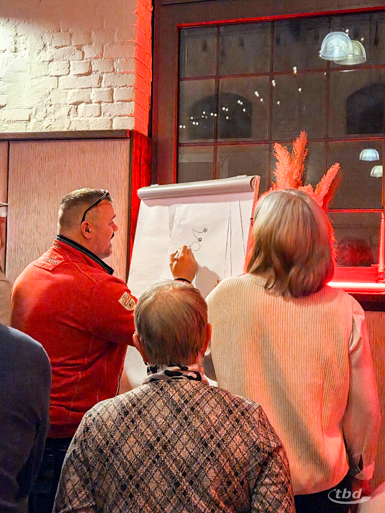 Es waren witzige Aktionen, die den Abend auflockerten – zwischen den vielen Gesprächen über das vorige Jahr und neue Entwicklungen. Mit gemeinsamem Essen, mit Anstoßen und Beisammensein bis spät. Eine gute Zeit miteinander, drinnen, im Warmen – während es für die Kälte hieß: Wir müssen draußen bleibe