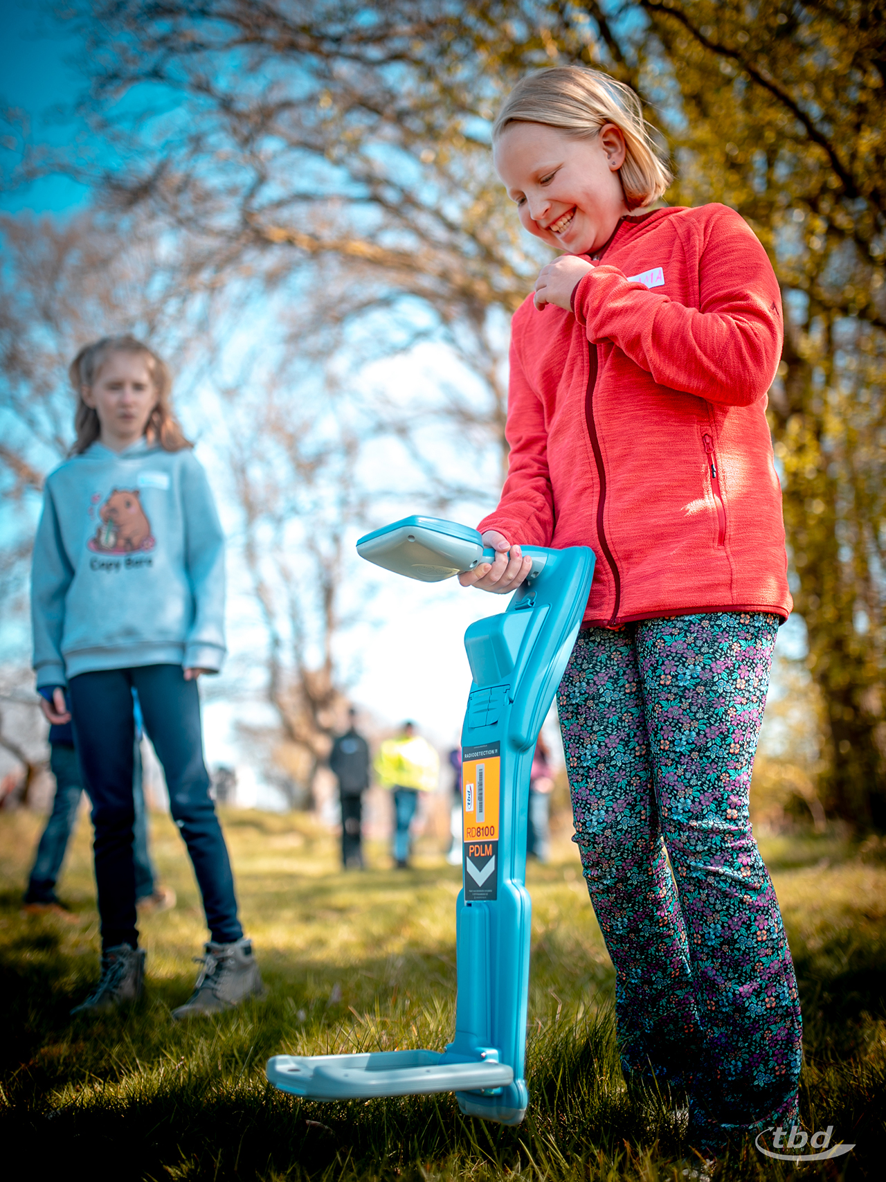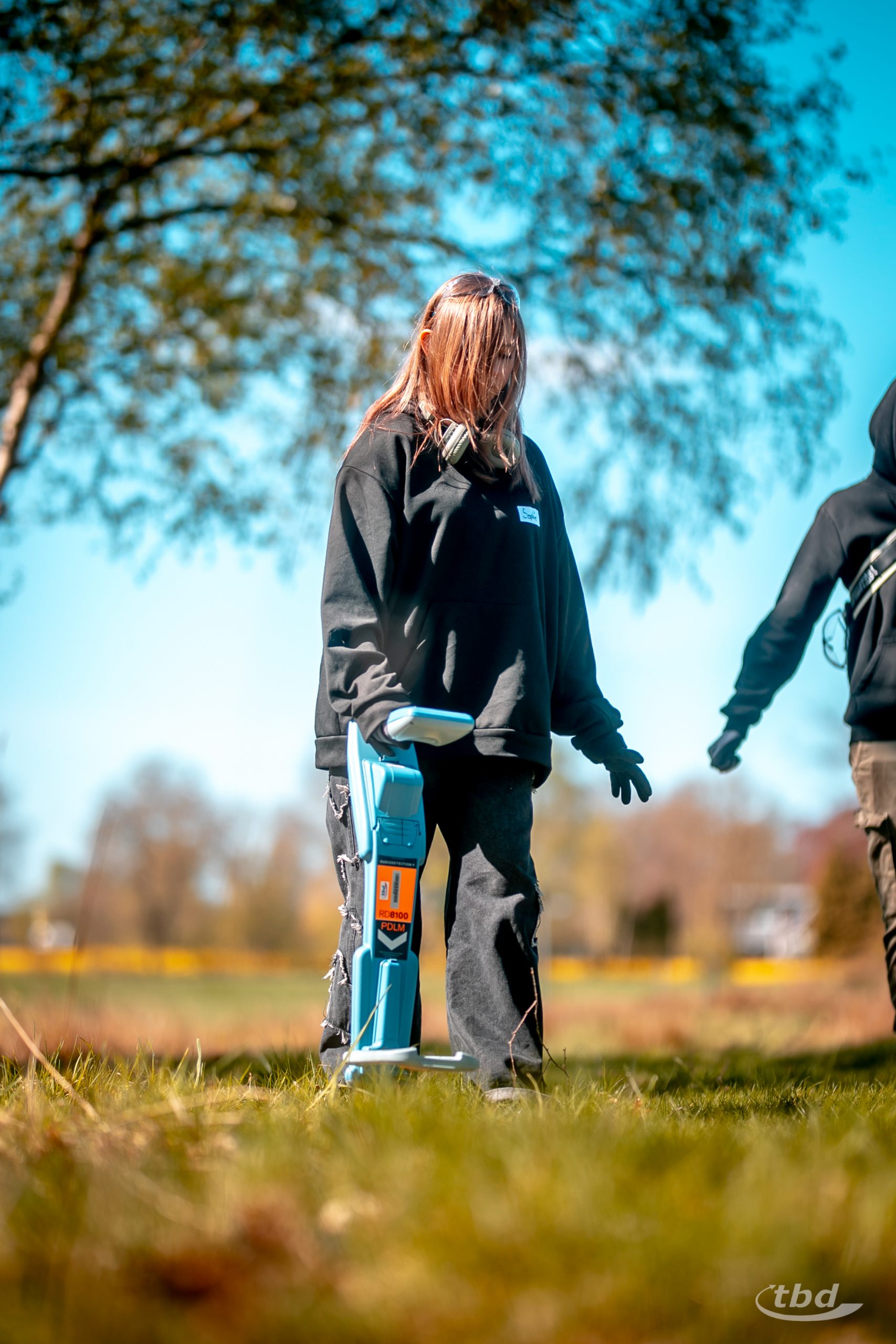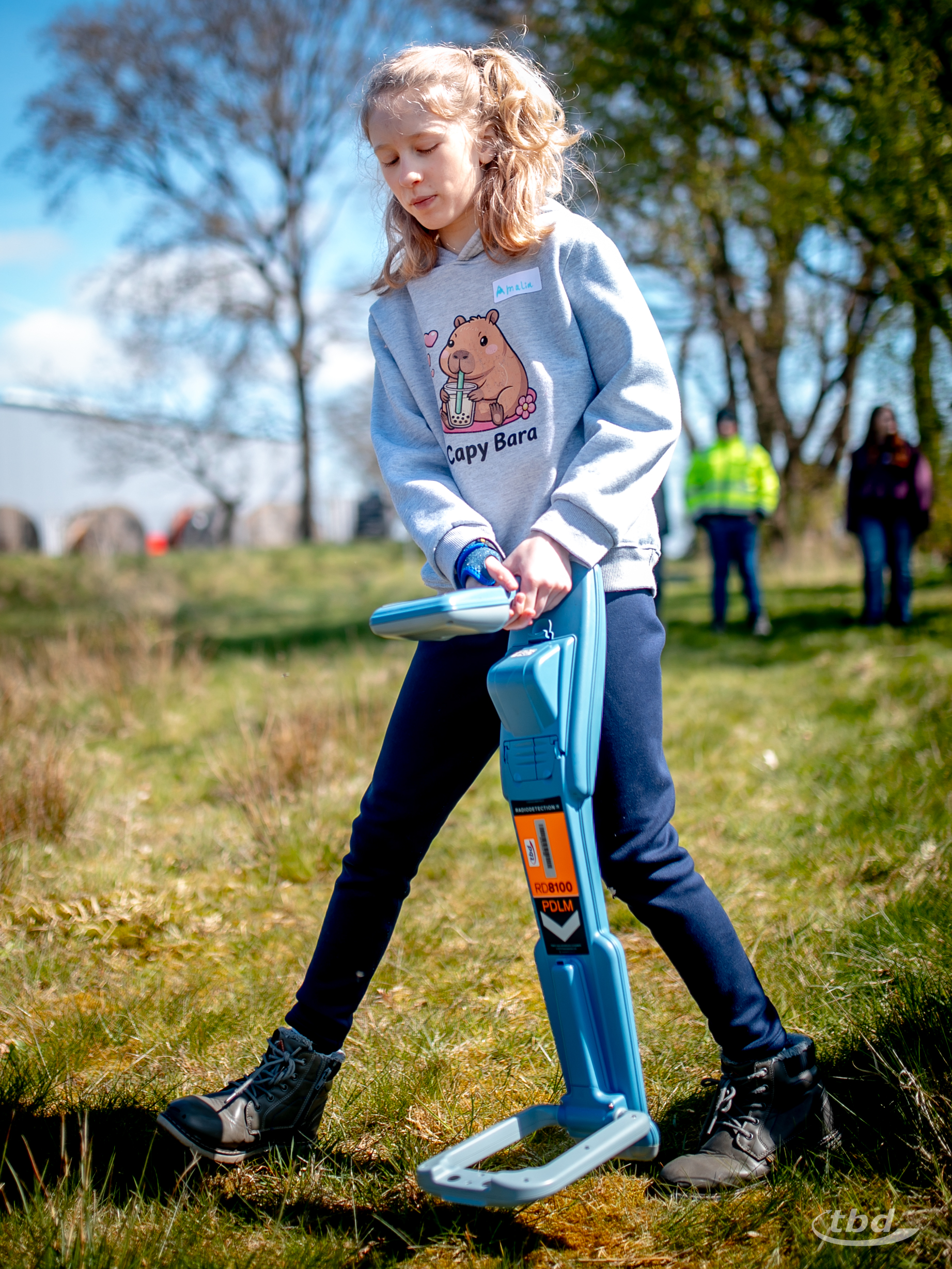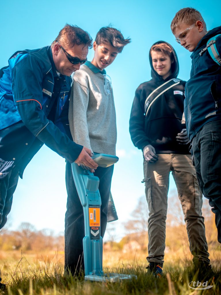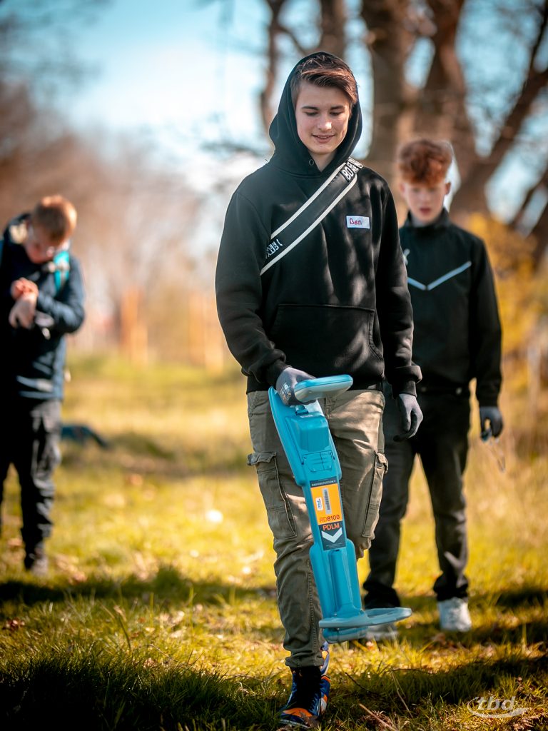 Und wer nicht wie sie gerade lötete, zog mit unserem Elektrotechnik-Meister Andree aus unserer Telekom-Abteilung los, um Glasfaser-Kugelmarker und Kabelfehler zu suchen, die entlang unserer unterirdischen Teststrecke verbuddelt sind. „Das ist ja ein bisschen wie Schatzsuche“, sagte Emma.