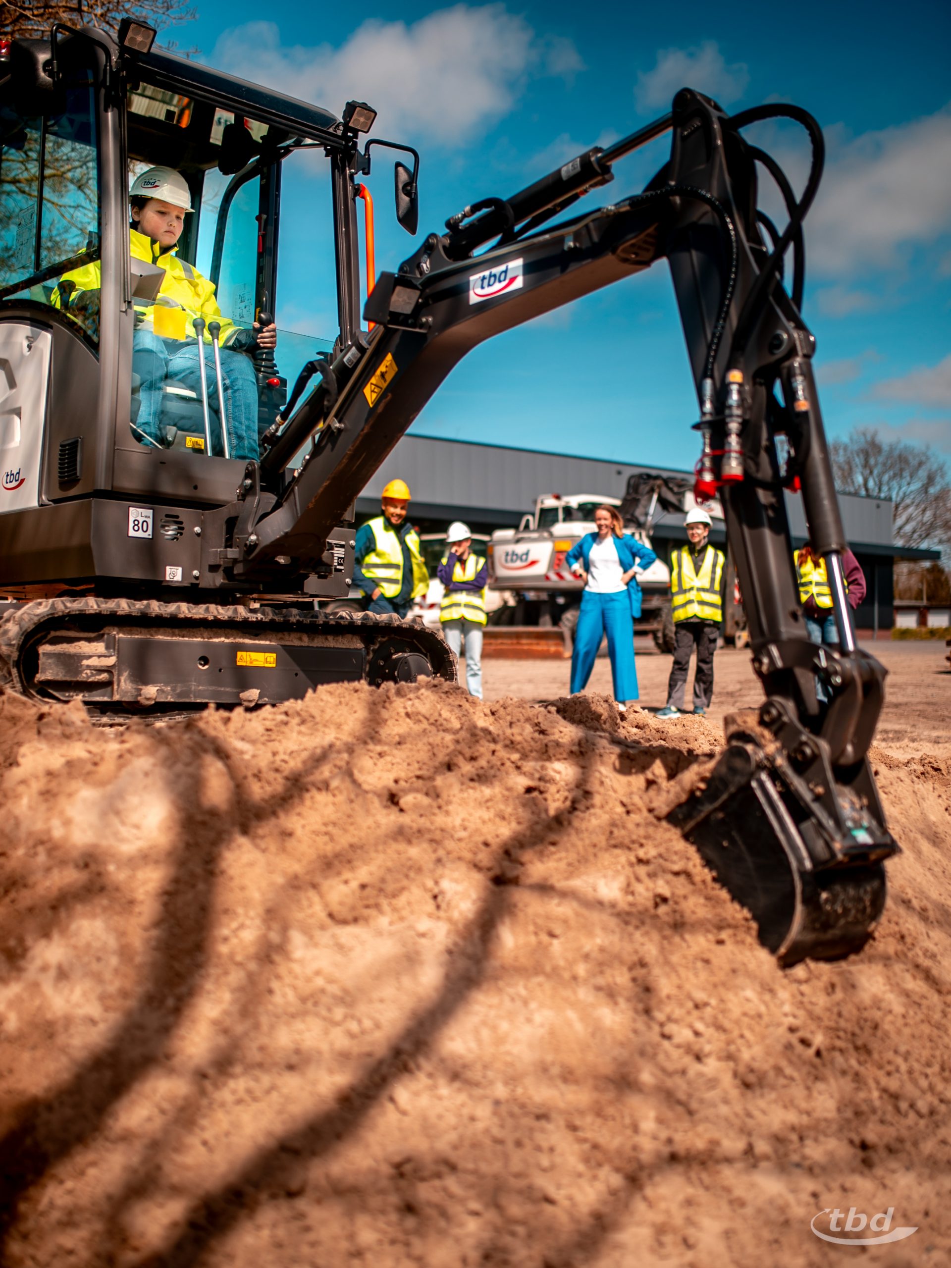 Ole blüht auf. Schon beim ersten Kennenlernen, am Morgen des „Zukunftstags“, fachsimpelt der Elfjährige über Stempel, Grabenraumlöffel und Tieflöffel unseres neuen Hitachi-Baggers. Zückt beim Gang übers Firmengelände immer wieder das Handy, um Zugmaschinen, Lastwagen – „so einen fährt mein Papa“ –, Bagger, Radlader zu fotografieren. Und er ballt die Faust vor Freude, als er erfährt, dass er auch noch mit dem Minibagger manövrieren darf. Einem Elektro-Minibagger. „Ich hab‘ schon auf 21-Tonnern über den Deich fahren dürfen, hab auf einer Bau-Messe schon mit Drei zum ersten Mal auf einem Bagger gesessen“, erklärt er.