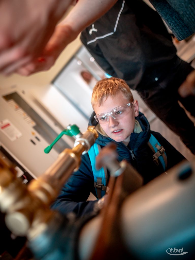 Ole ist eins von knapp 20 Kindern und Jugendlichen von der 5. bis zur 9. Klasse, die sich in diesem Jahr für den Zukunftstag bei uns angemeldet haben, um als neue Kolleg:innen für einen Tag unser Unternehmen kennenzulernen. Und während ein halbes Dutzend von ihnen draußen einen ganzen Tag auf Baustellen und im Zählerwechsel den Arbeitsalltag miterleben, nimmt ein weiteres Dutzend – sechs Jungs, sechs Mädchen –an unserer Standort-Rallye voller Mitmach- und Ausprobier-Stationen teil. Die haben wir erstmals so organisiert. Und der Spaß, den die Kinder und Jugendlichen hatten, spricht für sich.