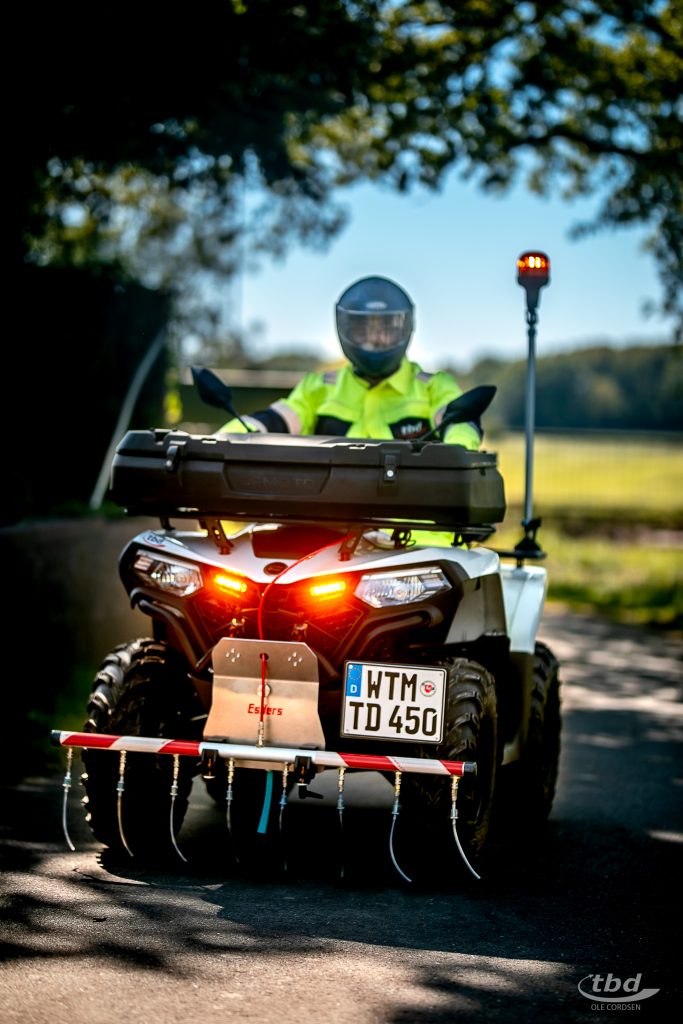 - Das Quad kann – anders als bei Autos – auch Leitungen unter Fuß- und Radwegen entlang Straßen direkt überfahren. Mit bis zu 6 km/h auf Fuß- und Radwegen, bis zu 30 km/h auf Straßen.
